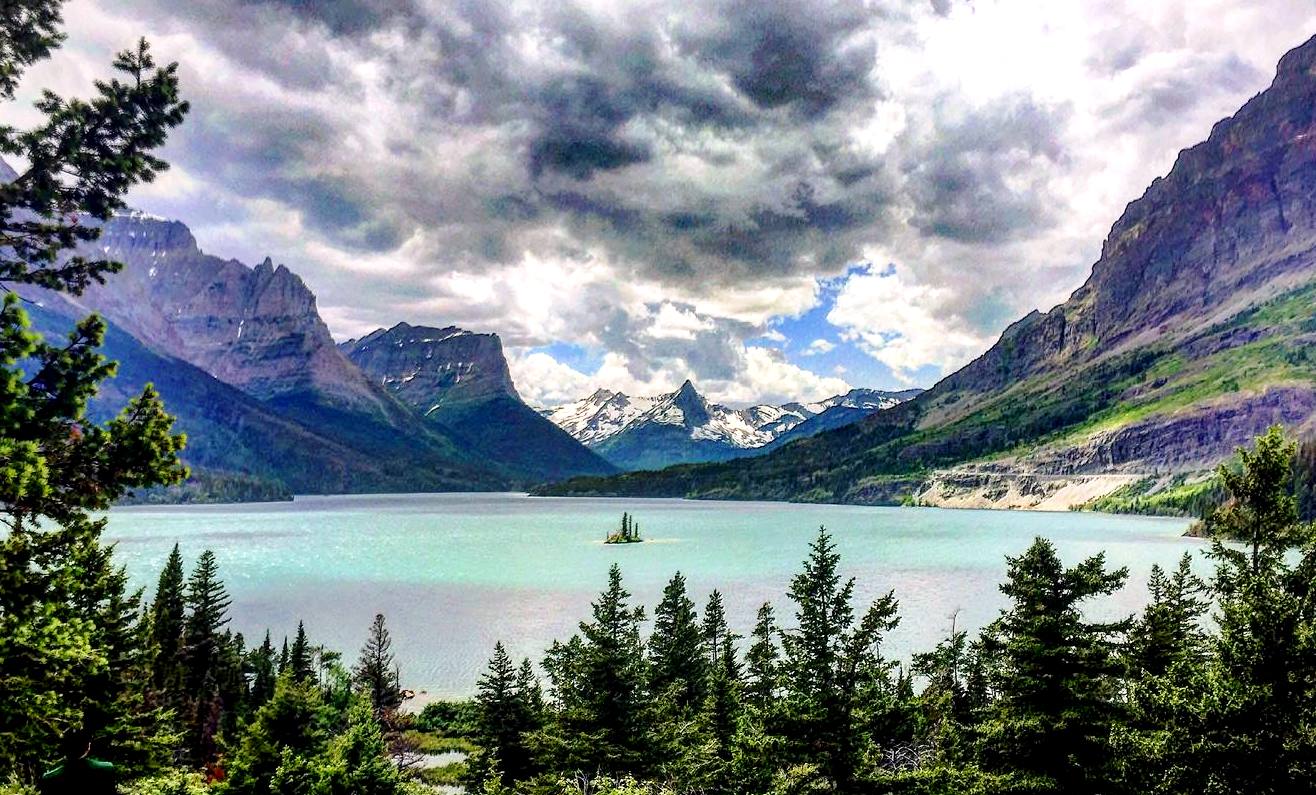 Then I headed north, truly north, into the far wilderness, a road so isolated that I thanked my lucky stars I'd visited the Jiffy Lube earlier. Eschewing the interstate highway for a serviceable state highway, I gradually veered to the west until I could make out the mountain range that formed Glacier National Park. Until then, it was all grassland but with a dark overcast that lent drama to the drive. My plan was to traverse the park, as the highway went, again winding through mountain valleys. And, if I could, to turn deeper into the park for the more dramatic views I sought, ever the dramatic viewer wannabe.